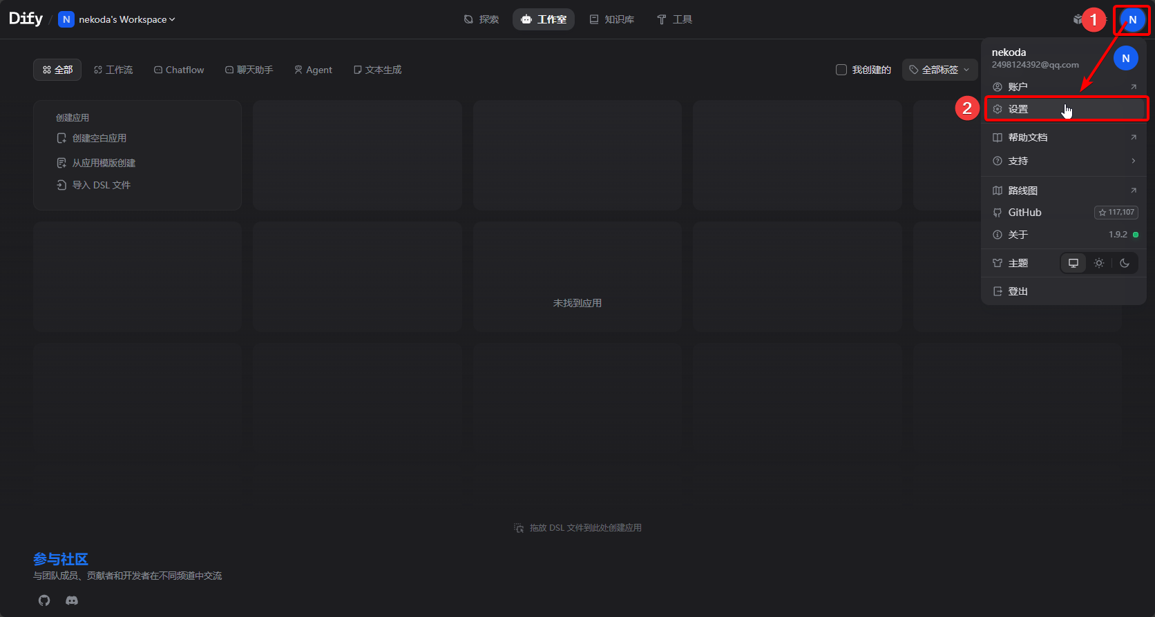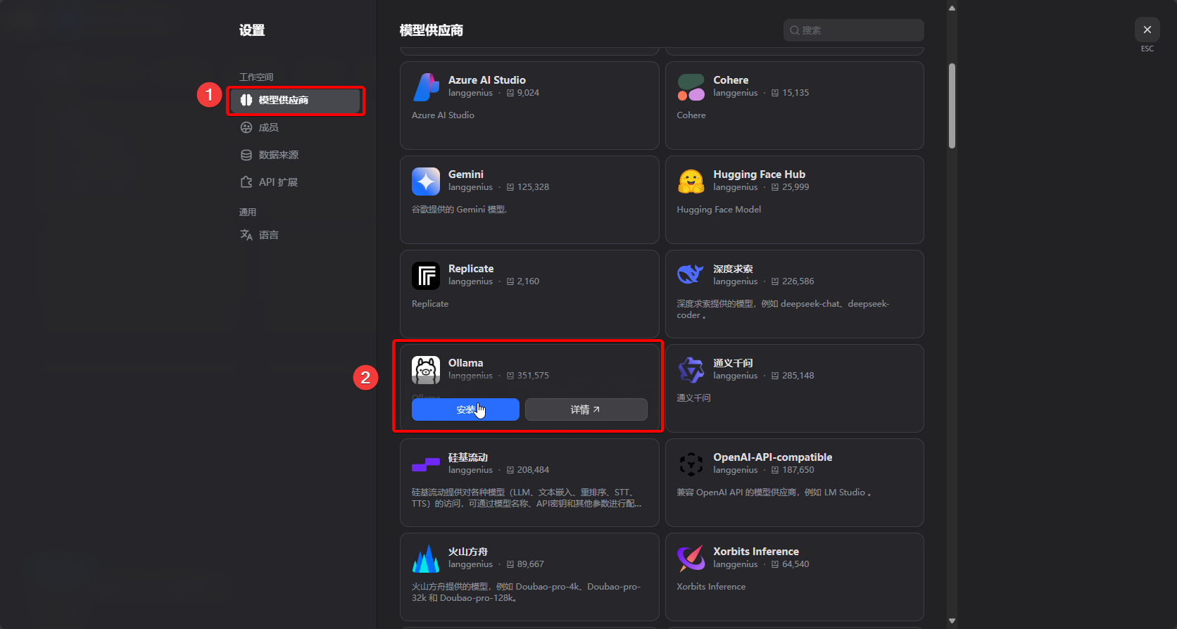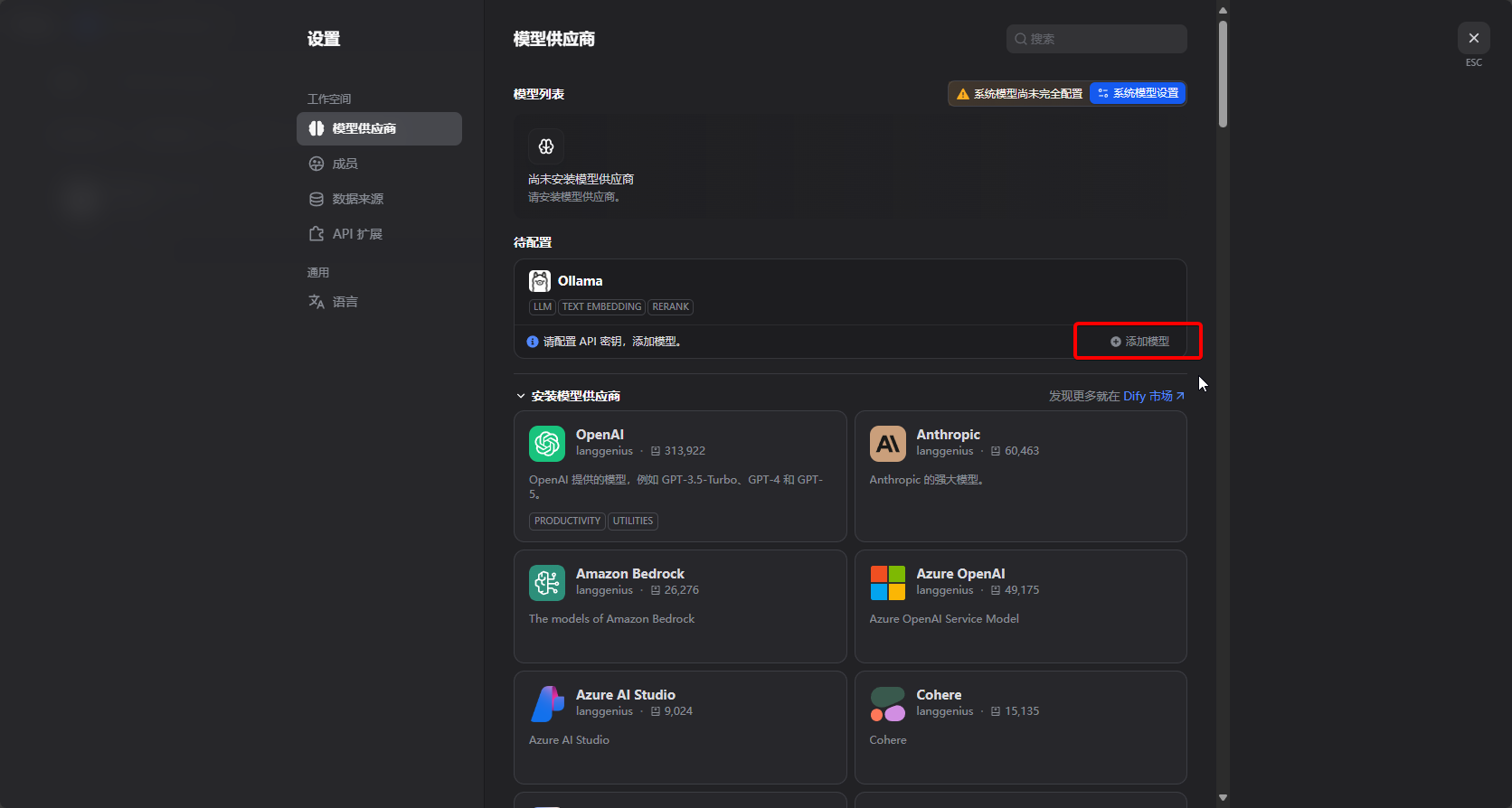 qwen3:8b 500a1f067a9f 5.2 GB 6 hours ago- 登录后进入 设置 → 模型供应商