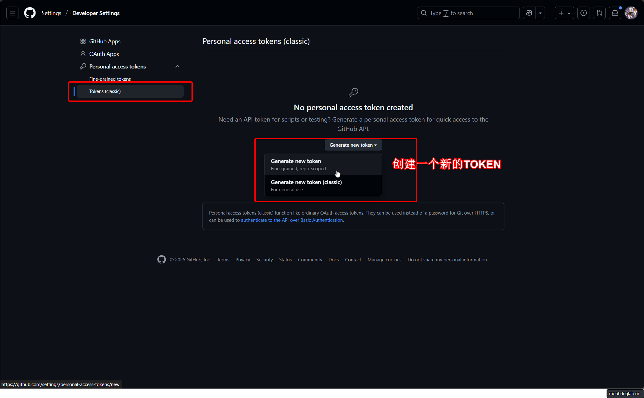 - 访问 GitHub Token设置页面(